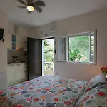 Deze accommodatie heeft airconditioning, samen met een TV, en uitzicht over de tuin. Een badkamer, die over een apart toilet en een douche beschikt, is ook van een haardroger en badlakens voorzien.